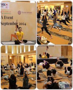 身体の不調や病気、ストレス等に効果のあるヨーガのポーズと呼吸法を、日本人の通訳のかたつきで、専門のインド人の先生に解説いただきました。