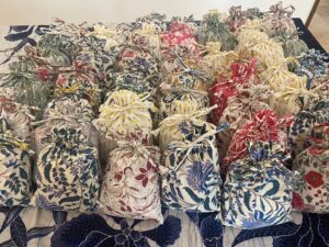 支援施設の一つである知的障がい児の訓練・教育を行っている「サマダーン」では、資金作りの為に保護者の方々がスパイスセット(ブロックプリントの巾着付き)を作製、販売しています。